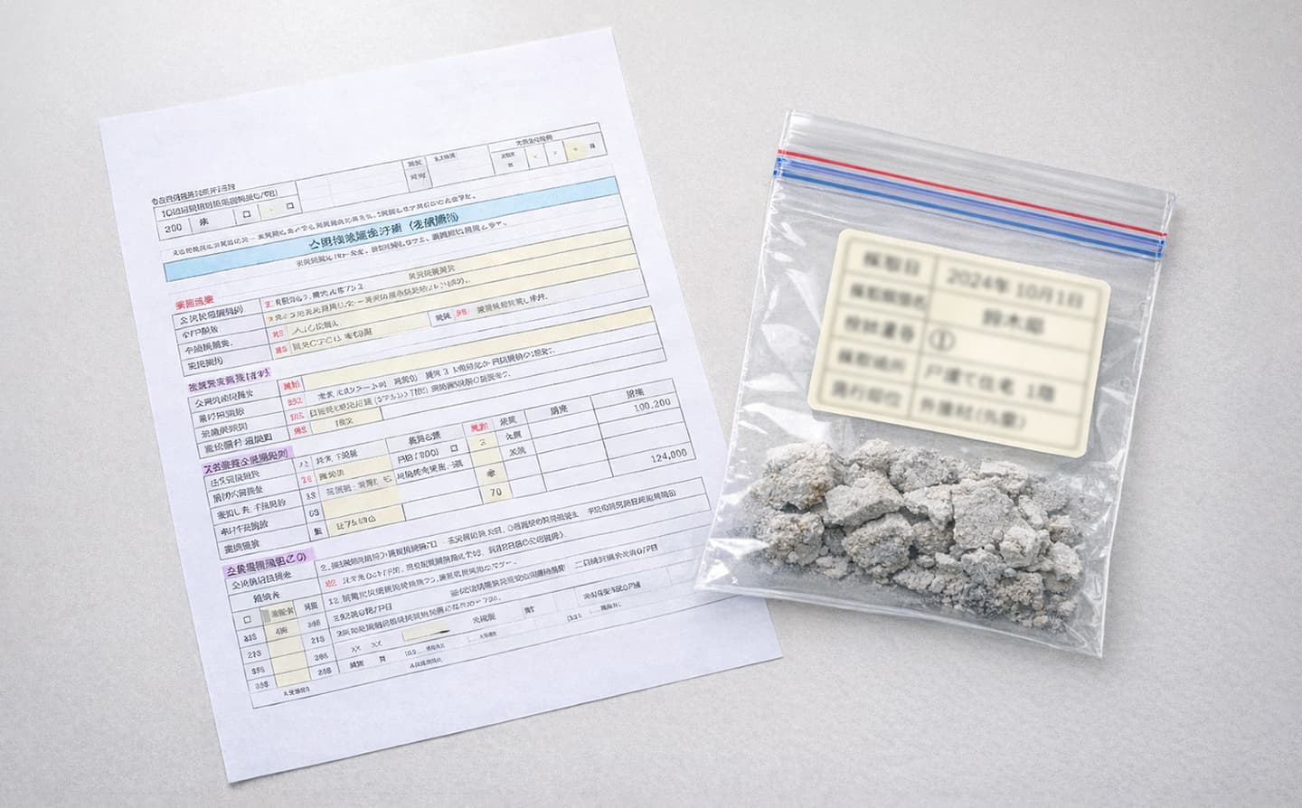 事前調査は、書面確認と現地目視を基本とし、必要に応じて検体採取・分析を実施。結果は報告書として取りまとめ、保存・備え付けが求められます。